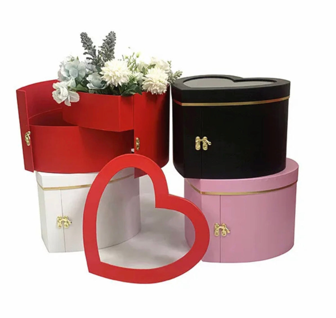 Luxury Two tier heart box with gold handle measures 27x24.8x19cm
